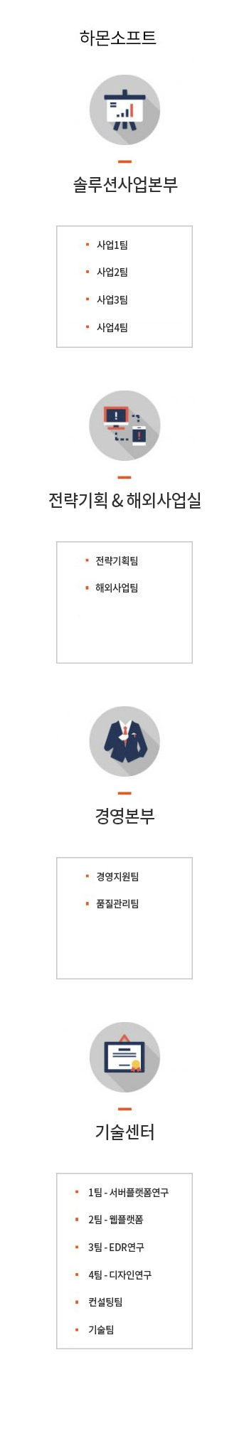 (주)하몬소프트는 경영본부, 영업본부, 기술본부, 연구소로 구성되어 있으며